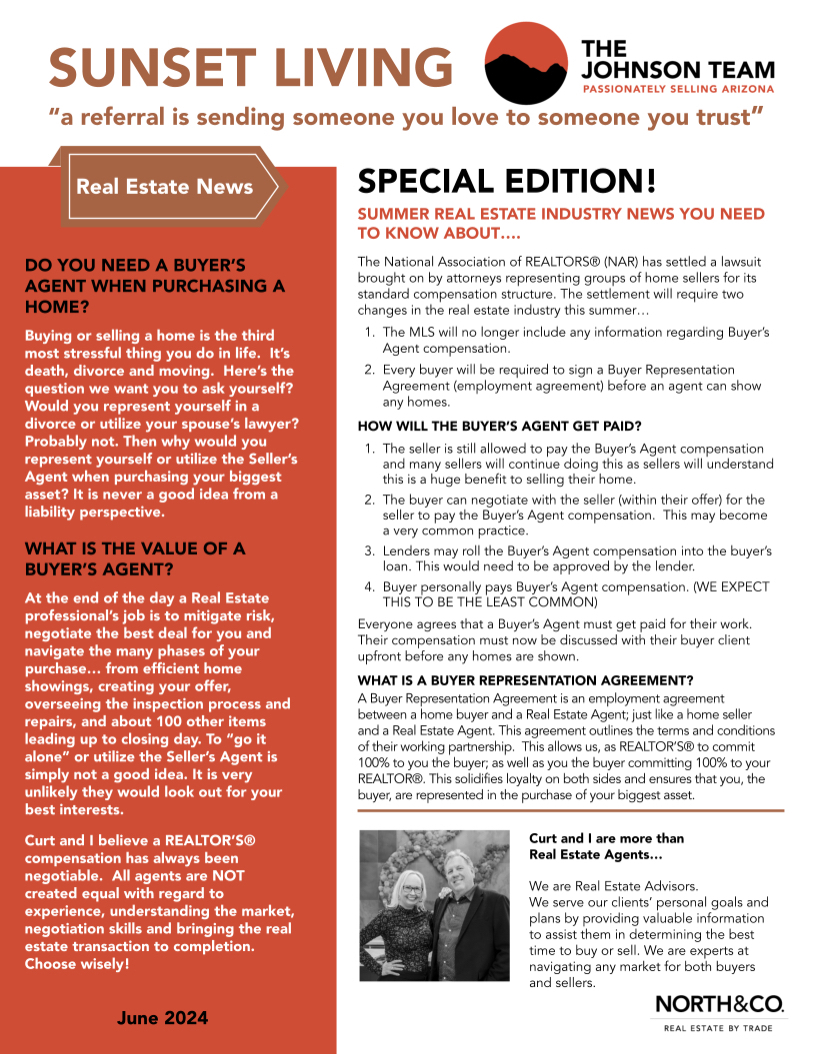 Sunset Living Newsletter - June 2024 | Curt & Peggy Sue Johnson | The Johnson Team