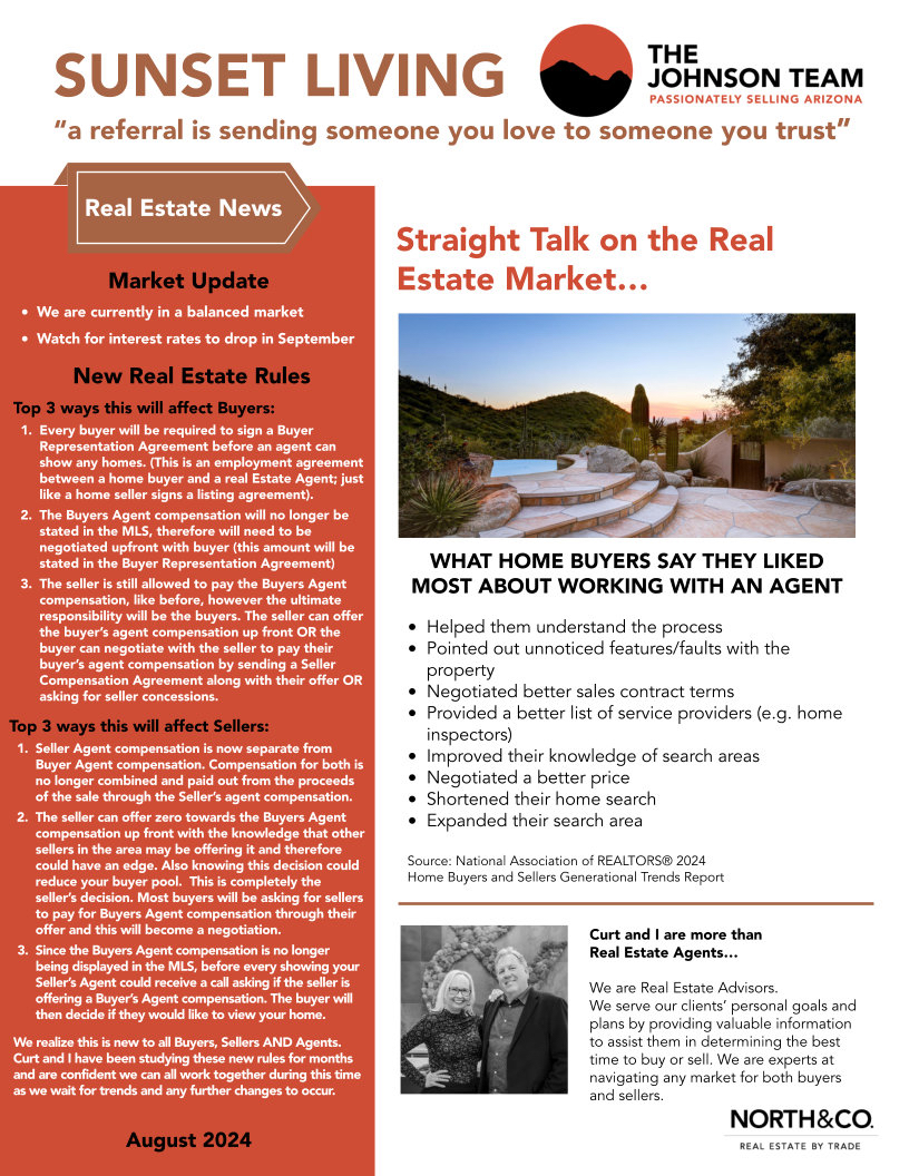 Sunset Living Newsletter - August 2024 | Curt & Peggy Sue Johnson | The Johnson Team