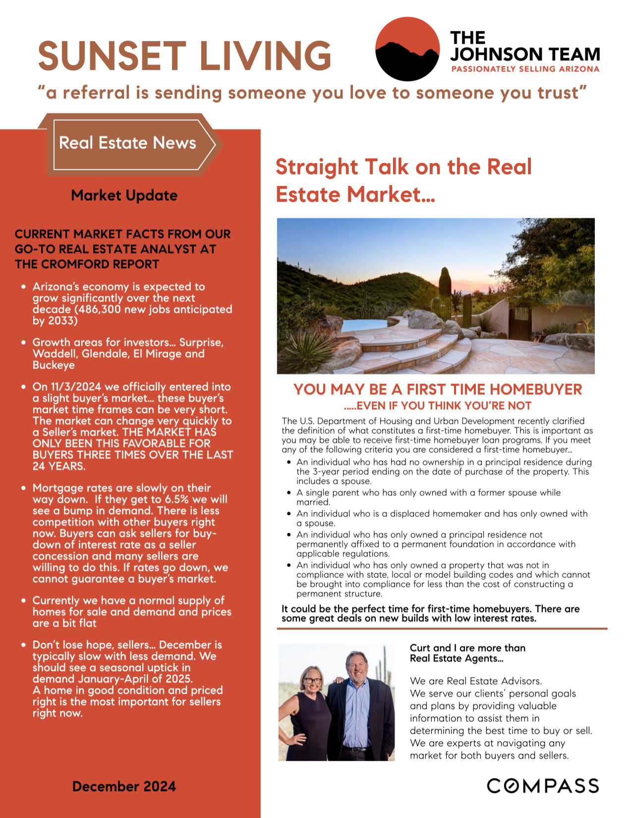 Sunset Living Newsletter - December 2024 | Curt & Peggy Sue Johnson | The Johnson Team